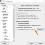 Once the file is imported, open up putty and input the public IP address. Then navigate to Connections > SSH > Auth and browse for the newly converted file.