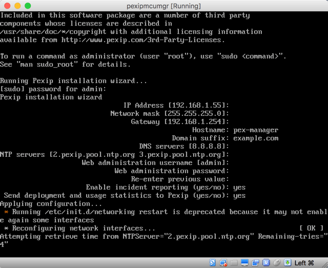 The Pexip Infinity Management node will now start to be deployed onto your VMWare server and will start once ready.