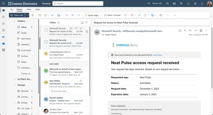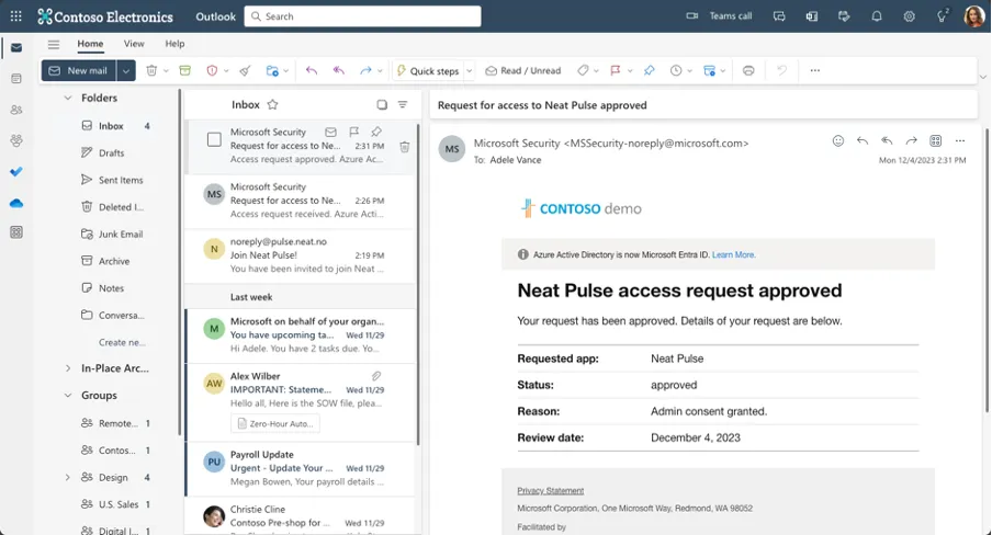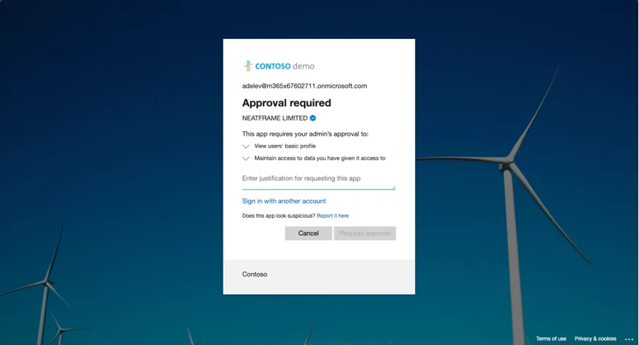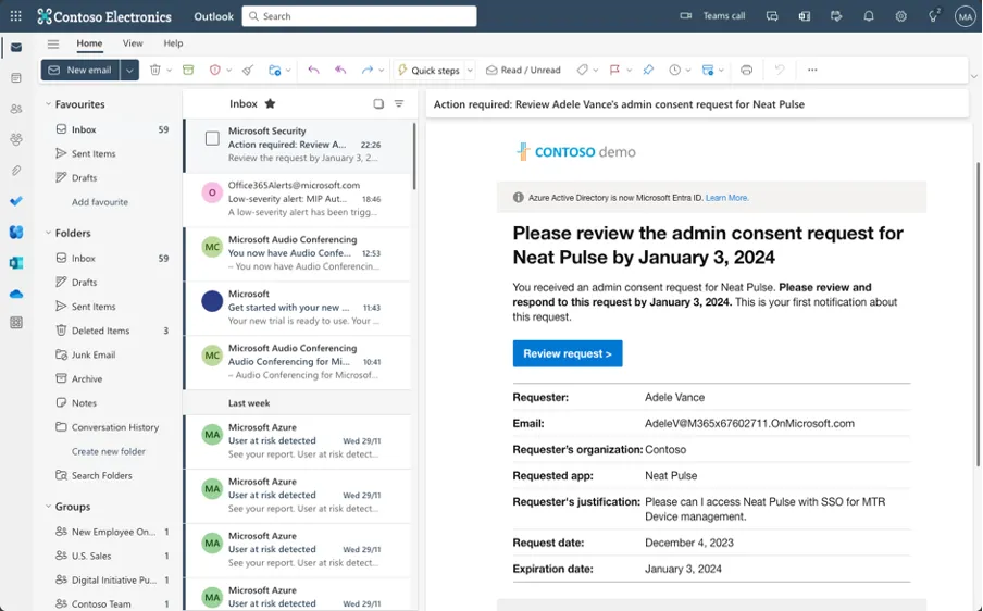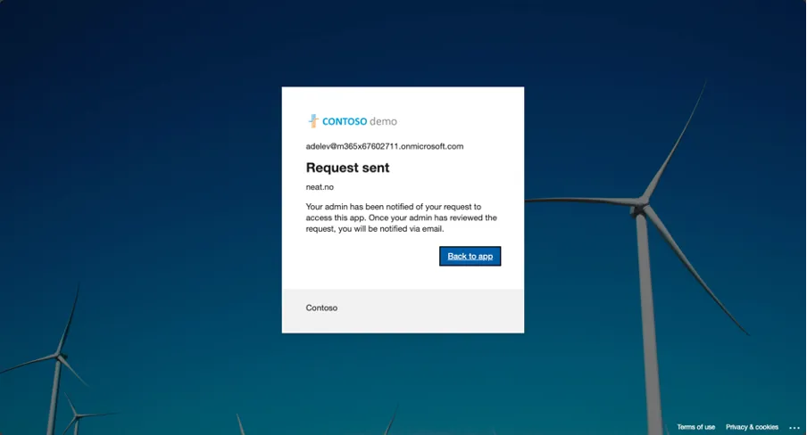 The app will then send a request to your Azure AD/Entra ID team for approval. Consent is done on behalf of the organisation. You will then get a mail to show that you’ve requested access.
