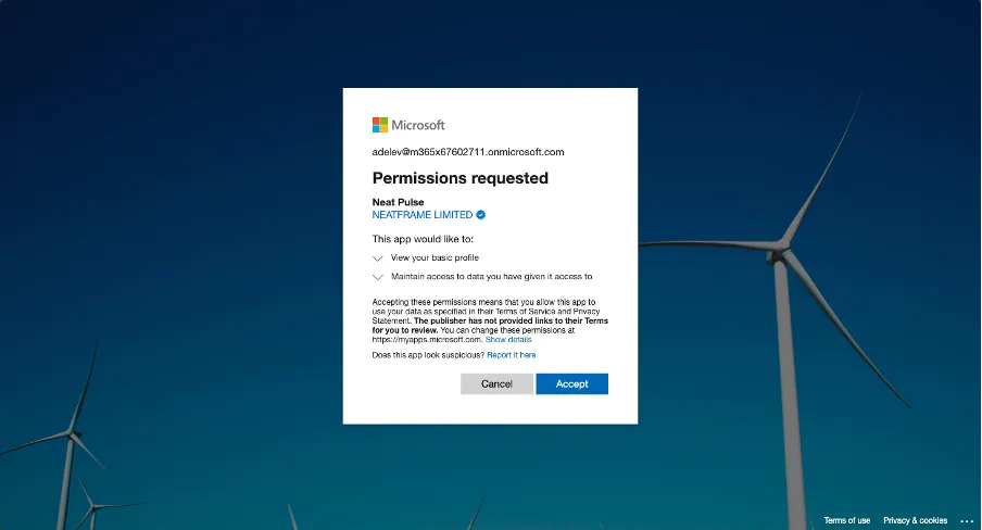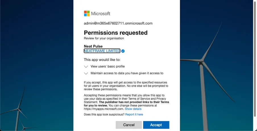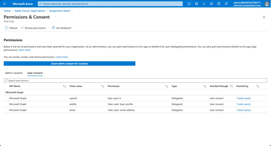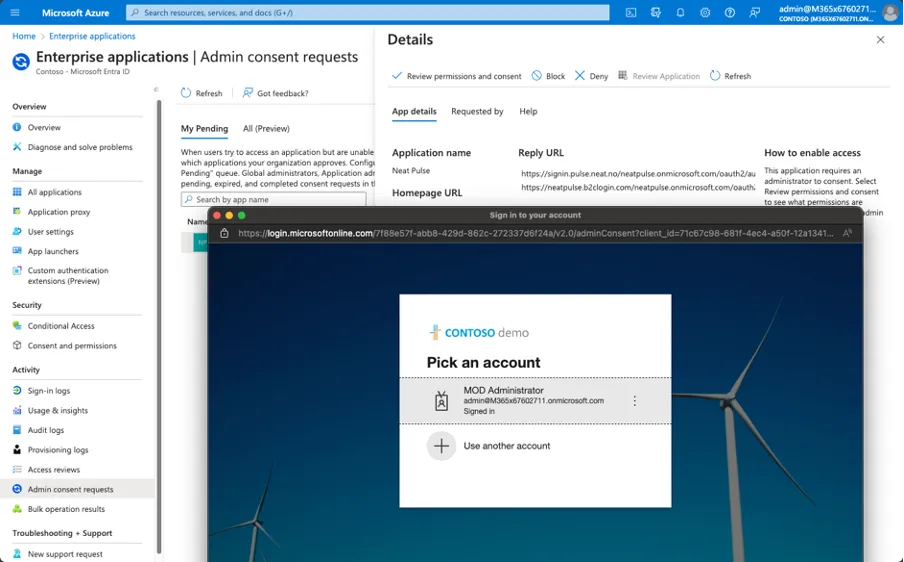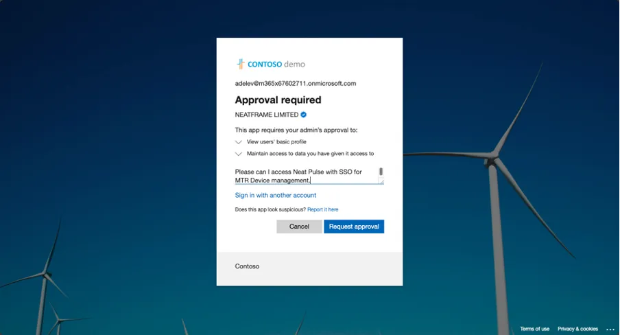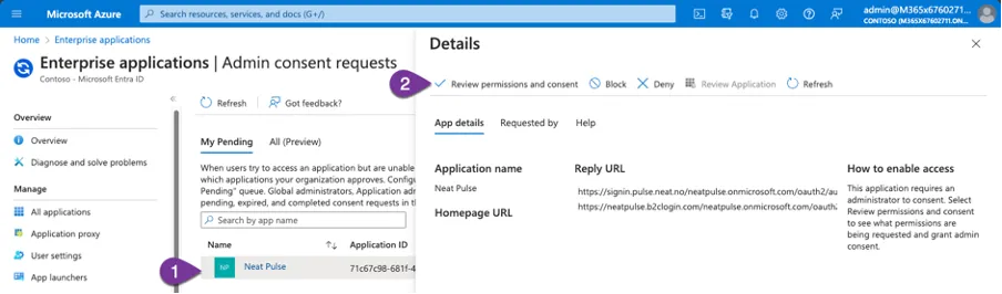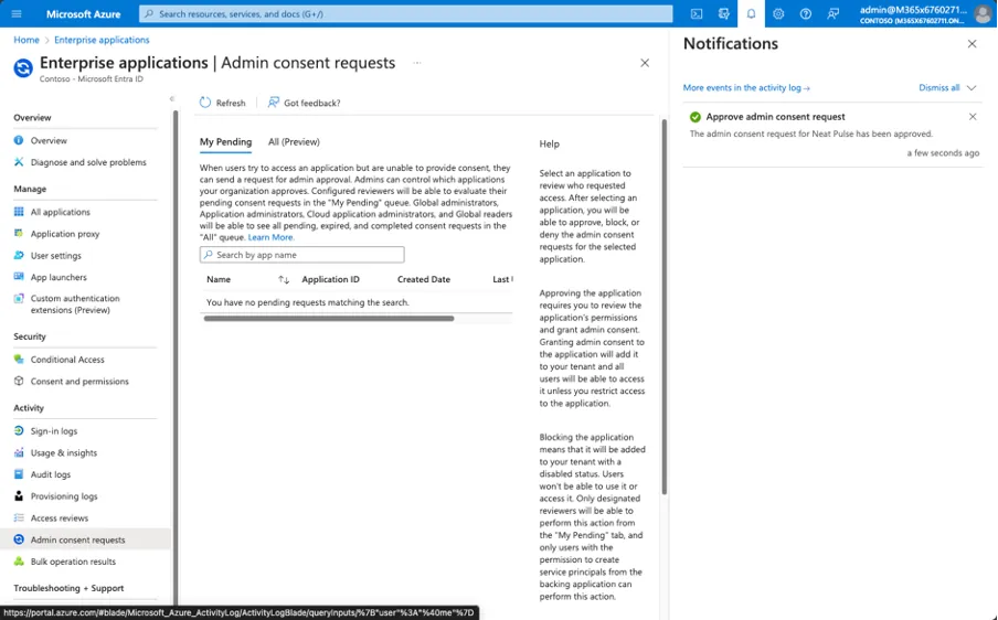 The Neat Pulse SSO Application is then approved to be used on the customer tenant.