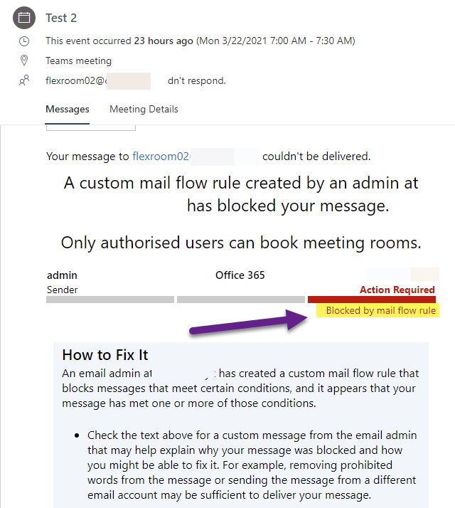 Blocked by Mail Flow Rule