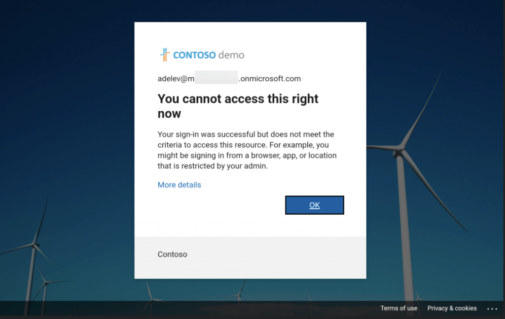 In summary, I don’t have the magic answer as to why the device is not signing in. If it doesn’t sign in first time, then there is probably a policy in place, and you’ll have to work with your colleagues to find out what policy is restricting it. Another way to look at fixing this, you could create an exception policy to allow certain devices/locations/IP Addresses.